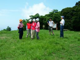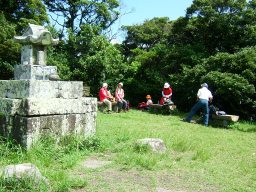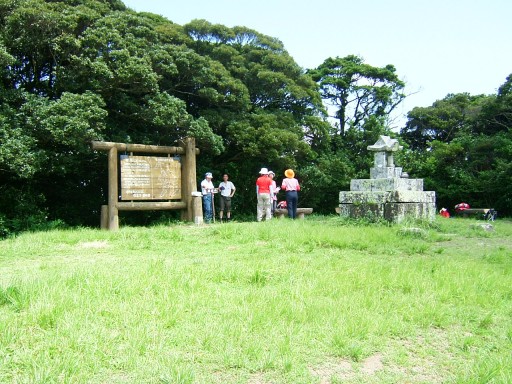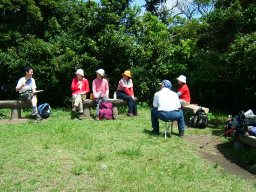 頂上にはジョン君のパパさんとそよ風さんのお友達Kさんが待っていた。愛犬ジョン君は夏バテで自宅待機のようだ。でも,変だ。二人は他人のように離れている。Yさんのお兄さんとパパさんは,よく知った友人だ。お互い知っていると思っていた私たちは,「パパさん,嫌われるような気まずいことをしてしまったのか?」一瞬,緊張が走る・・・ が,よく聞いてみると,お互いその人だとは気づいていなかったようだ。ここから,無責任なみんなの会話が始まる。