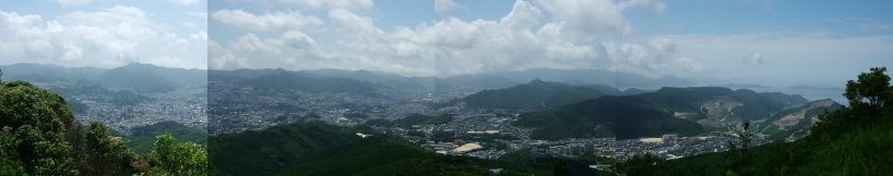 山頂からの眺め。長崎市内が一望できる。空には夏の雲が広がり出した。