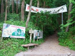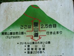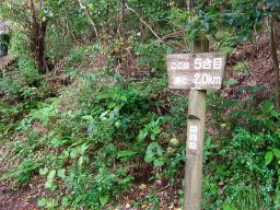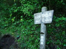 展望がきかない道を少しずつ高度をあげながら登っていき,「何合目 あと何km」の道しるべで,今の自分の場所を確認していく。