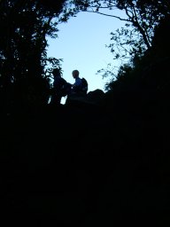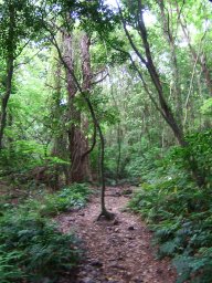 まだちょっと暗い登山道を歩いて行く。道の両側は青々とした草が芽吹いていて,ほどなくすると蝉のけたたましい声が響き渡るようになってきた。さすが南国,初夏を感じさせるひとときだ。