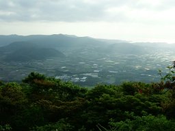 山頂からは家族が待っているキャンプ場も見える。さて,長居はしていられない。野の中で家族が置き去りのままだ。野犬に囲まれて娘が泣いているかもしれない。もっとゆっくりしたい心にむち打って下山路に着く。下山路ではたくさんの方とすれ違った。小学校前の子ども達も結構登ってきており,「すごいねえ」と声をかける。