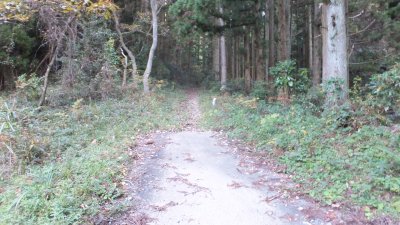 しばらく行くと林道に出る。林道を渡って登山道に。ちょっと急坂を登り出す。