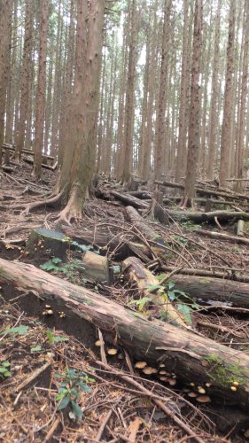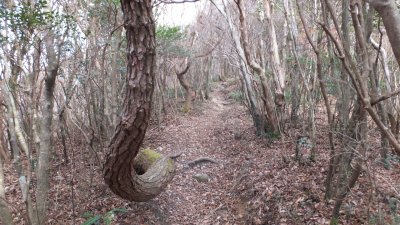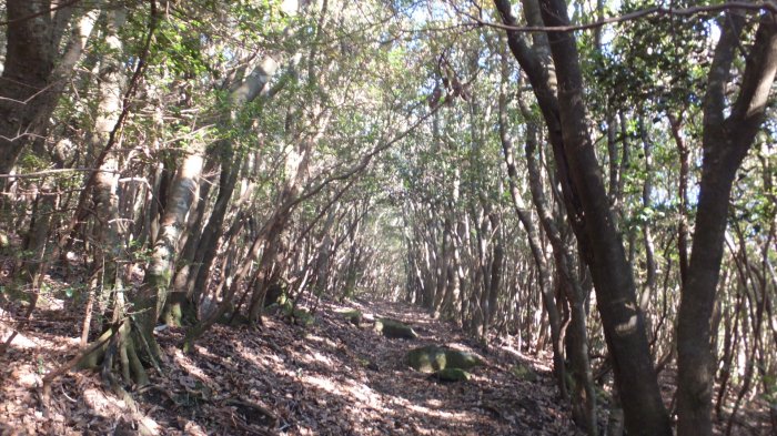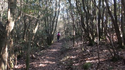 急坂を登ると植林帯へ。整備された木々が美しい。そこを抜けると気持ちのよい自然林に変わる。