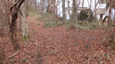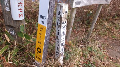 と、妻が頂上の杭の標識に疑問を抱く。