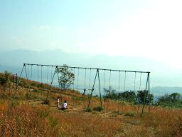 ブランコやターザンロープでひとしきり遊ぶ。