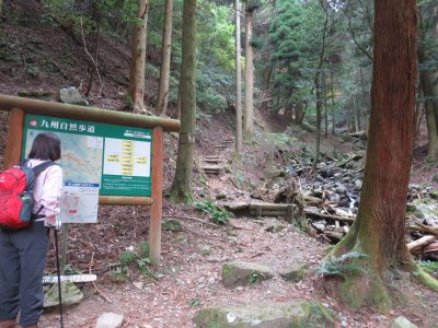 秋月から古処山へのルートは片道2時間ほどとなる。が、妻の体力を考えると、往復6時間はかかるだろう。そうなると秋月観光ができなくなる。そこで、林道で登った中腹から登ることにした。