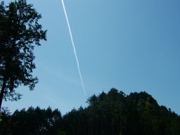 さあ,出発。琴路岳の背後には美しい飛行機雲。