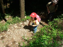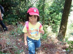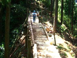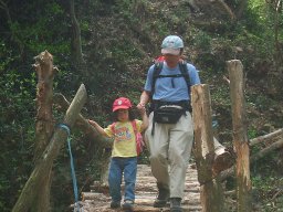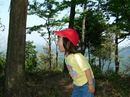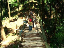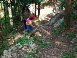 琴路橋を渡ると,ジクザクの急な道が続く。息子は走り出す。それを見て娘も走り出す。写真を撮ろうと構えている父は,あっけなく追い越される。眺めがよくなってきた。
