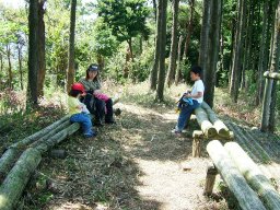 「あれぇ。丸太のベンチがある。」