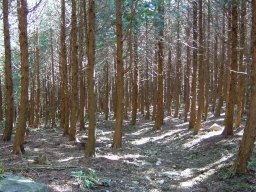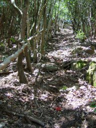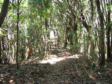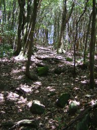 一度,植林地帯に出た後,また自然林の中へ