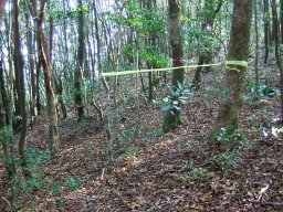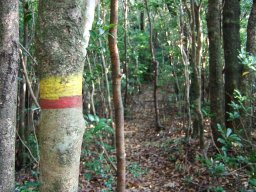 遠目山を過ぎてしばらく行くと,黄色いテープがあった。
