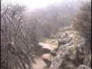 「そのうち晴れるやろう」の気分のまま登山開始。最初は,舗装してある階段を登る。やがて東屋をすぎると木製の階段へ。そして,やっと登山道らしくなる。さすがにたくさんの登山者が登る山だけあり,登山道は踏み固められ,道が途中途中二股に分かれる。(きっと登りと下り用だろう。)