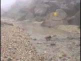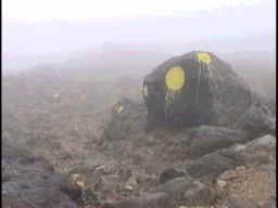 霧で道がわからなくなるが,岩につけられた黄色のペンキが目印になる。これがないと遭難してしまう。天気のいい日に見ると,ペンキだらけで汚いという話を聞くが,急な霧や雪のとき,命を救ってくれるものであろう。