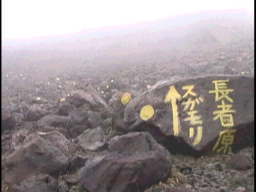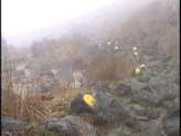 中岳から久住分かれに戻り,北千里が浜をめざす。急な斜面をすべらないように降りていく。歩く左の山からは火山のガスが噴出する「ゴォー」という低い音が響く。臭いに気をつけながら,北千里が浜へ。山の中にこんな平原があるなんてと霧で全体像は見えないが,ひとりしきり感心する。私が生まれた頃,この北千里が浜で10名弱の遭難事故死があったらしい。そんな歴史を霧の中に思い浮かべながら歩き進める。