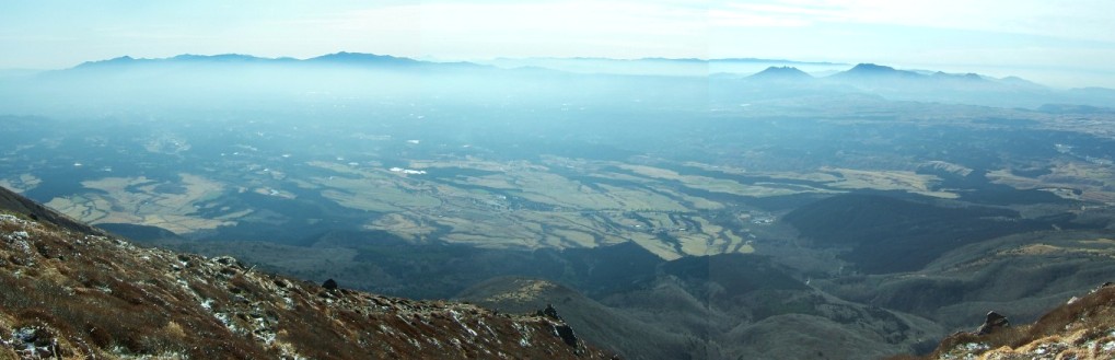 南側斜面からの眺め。祖母・傾も阿蘇もすぐ近くに見える。