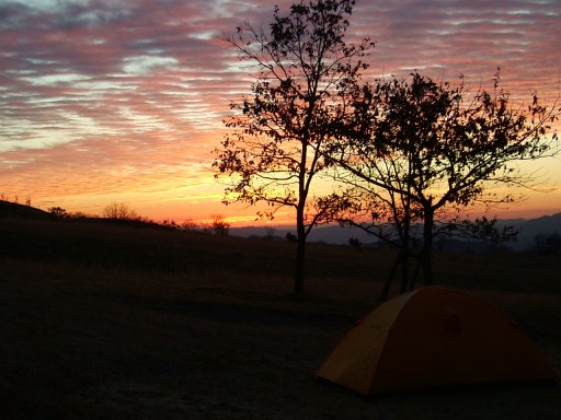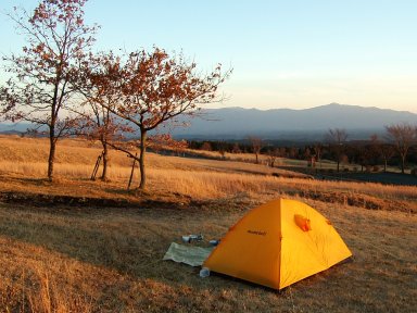 テントを張った場所はとあるキャンプ場。見晴らしのよい草原地帯であるが、風が吹くと防ぐものはない。しかし、ここから見える祖母・傾の山容がたまらないのである。