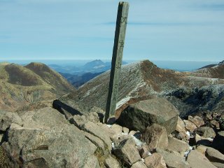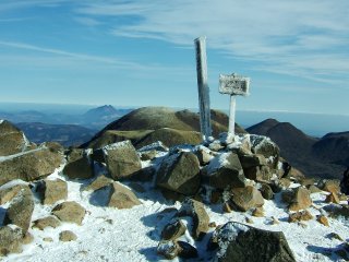 久住分かれから久住山へ。天気もよく、この冬場であるが、結構な人達が登ってくる。山頂はさすがに風が強く、南側斜面側に座っての昼食とした。天気がよく、遠くまで見える。祖母・傾や阿蘇がすぐ近くに見える。雲仙も平成新山・国見岳と九千部岳あたりがちょこんと頭を霞みの中から出していた。