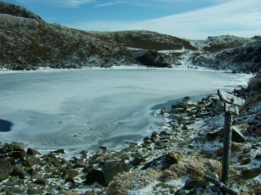 もっと歩きたかったが、次のキャンプ場に入る予定もあるので、凍った御池だけを見て、下山することにした。御池の縁は少し溶けているところもあったが、凍った御池の姿、圧巻である。