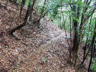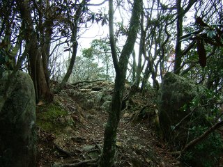 金泉寺から五家原岳へ。この道はいつもロングコースのラストを飾るのに使っていた。そのため、登る標高差は大したことないのだが、とてもきつい坂という印象の道である。ただ今日は春一番の強風に体はほどよく冷やされ、ゆっくりと気持ちよく歩くことができた。