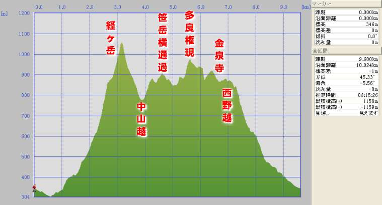 〜金泉寺〜西野越〜八丁林道駐車場