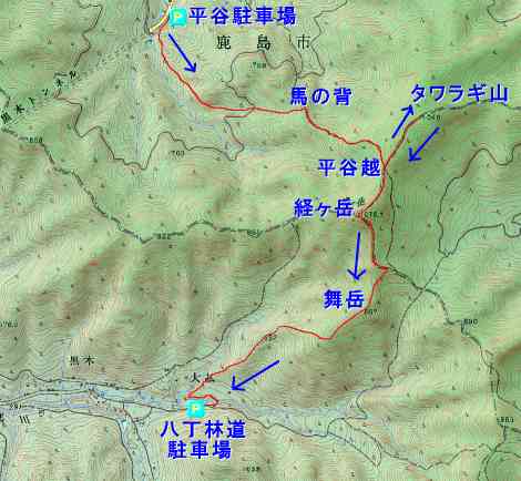 平谷駐車場〜平谷越〜タワラギ山〜平谷越〜経ヶ岳〜舞岳〜八丁林道駐車場
