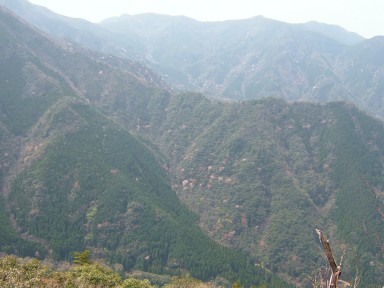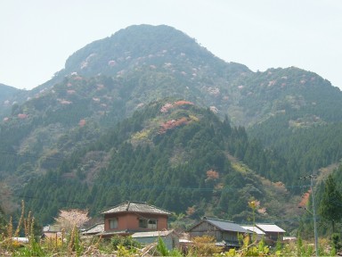 山々の木々はいろんな色の花を咲かせ,点在している。春も美しいなあ。
