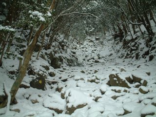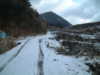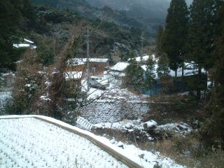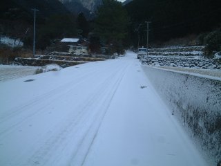 道は雪で凍っていた。黒木の家々も雪をかぶっている。