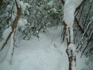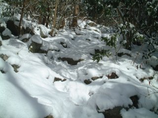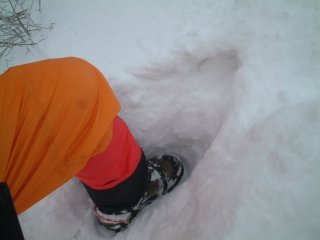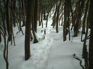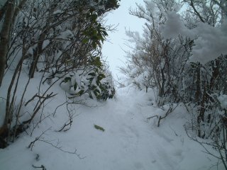 舞岳への道は,また雪が積もると別の道のようだった。とっ,出た!ひざが痛い!