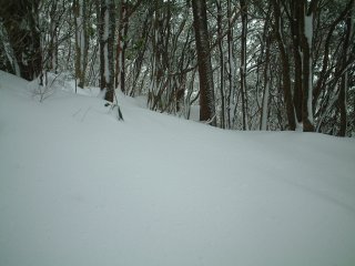 ツゲ尾に着く。おおっと,ここからの雪は30cmほどあるぞ。