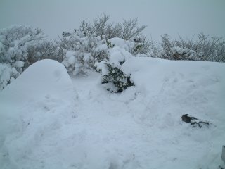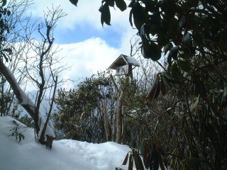 頂上は風に雪が払われ,さほど積雪はない。しかし,風はさすがに冷たい。頬を刺す。