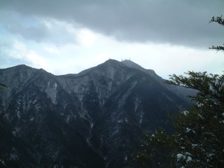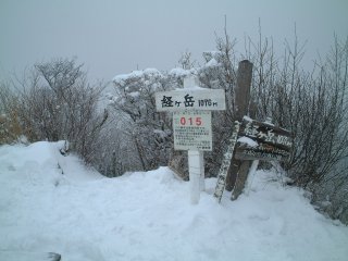 経ヶ岳山頂。雪は風で飛んで思ったほどではなかった。