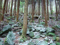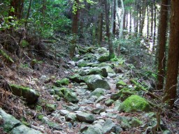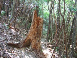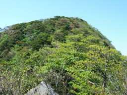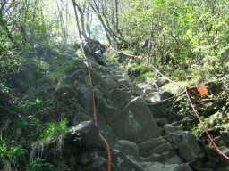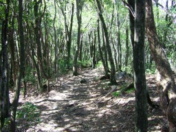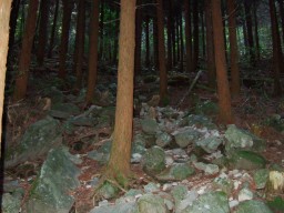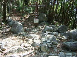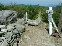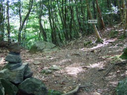しばらく登ると笹岳の横にでた。ここで休憩することにする。しばらくすると金泉寺側から来たおじさんがやってきた。ちょうど60前後のやさしそうな笑顔のおじさんである。しばし言葉を交わし,おじさんは横に座って休憩した。