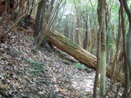 経ヶ岳から山頂直下コースを通って,中山越へ。いつもはここで休むのだが,後ろから団体さんが来ているので,今日は進んでしまえ。途中,経ヶ岳に向かう道で初めて小学生に会った。聞いてみると小学4年らしい。落ち葉に足をとられてこけながら登っていく。後ろからは山が好きそうなにこにこのおじいさんが来た。思わず,すごいよぉ,最後までがんばれ!と声をかけた。