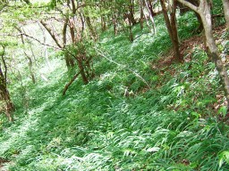 オオキツネノカミソリがもう青々とし,夏の到来を待っていた。