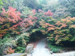 砂防ダムを渡ると、すぐに紅葉が目に眩しい。