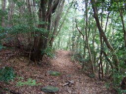 もうすぐツゲ尾だ。木々の間から空がのぞいている。