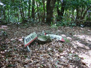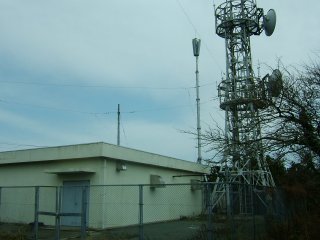 平坦な場所を歩いた後、少し登り返すと、いきなり舗装してある車道に出た。木槲山は車道を少しあるくと着いた。山頂には携帯のアンテナ基地などがいつくか建っている。アンテナ基地もあるので眺めはいいのかなと思いきや、眺めは皆無だった。ぽこんと出たこじんまりとした丘の上に三角点がある。