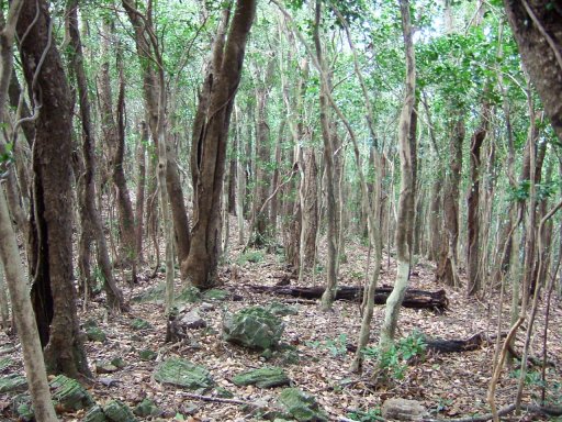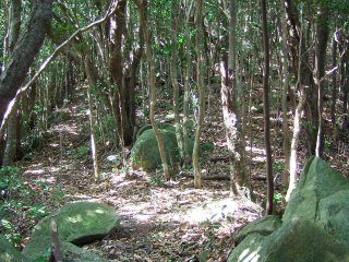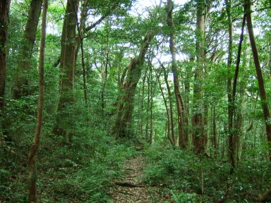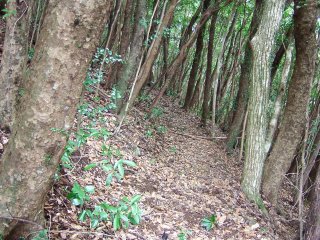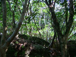 501Pを過ぎると、緩やかな地形となり、木々の間をぬうようにして歩く。自然林がとても気持ちよい。対馬の山であることをしばし忘れて、豊かな自然の中の道を歩く。