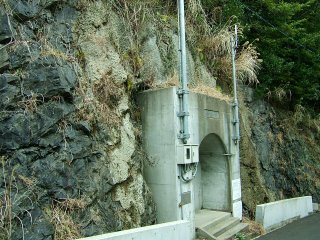 車道をしばらく下りていると、岩盤を掘ってできたようななんとも不思議な建物があった。「防災科学研修所 厳原地震観測施設」と書いてある。この位置から横穴の50m奥に機器が設置され、データは防災科学研修所に集められるらしい。 対馬の中でもここが選ばれるということは、岩盤の状態、車道の存在、他の影響等、適した場所であったのだろう。