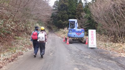 「登られますか。この先、工事しているので、気をつけて通ってください。」