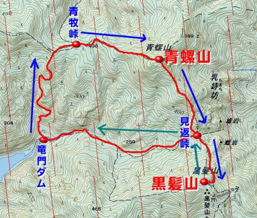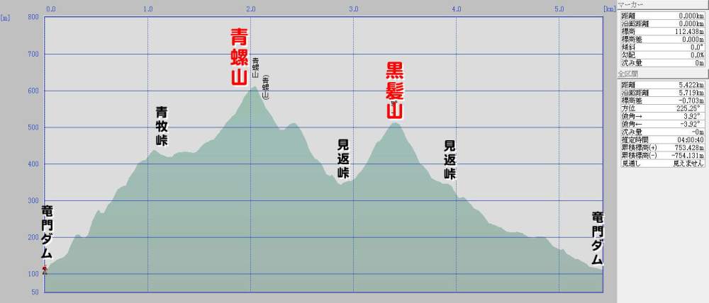 竜門ダム〜55分〜青牧峠〜30分〜青螺山