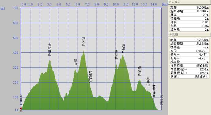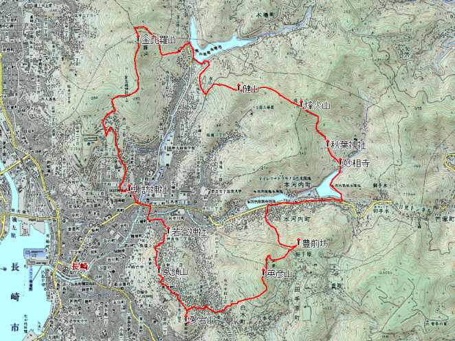 諏訪神社鳥居〜金比羅山〜西山高部水源地〜仏舎利塔〜健山〜烽火山〜秋葉山(秋葉神社)〜妙相寺〜
