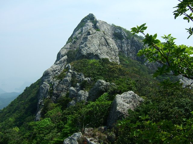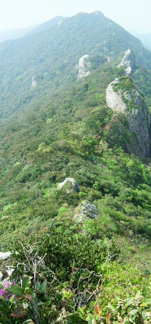 西岩峰から,一端登山道を下って戻る。広場を過ぎ,祠を過ぎ,しばらくすると大きな岩峰が右側に出てくる。