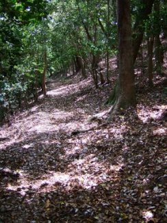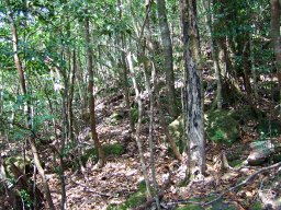 上見坂登山口近くになると,林道になり,面白みがなくなるが,それまでは起伏が緩やかで,心地よい登山道である。地形図で細かい起伏を確かめながら歩いてみた。対馬に来てから,地形図を見る練習がよくできているなあと感じる。