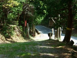 そこを左に曲がり,ヒノキの林を下っていくと白嶽から上見坂の登山道に出る。
