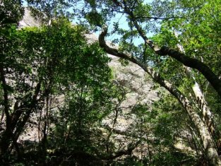 稜線に出て,少し戻り西岩峰を眺めると,なかなかの迫力だ。西岩峰からこんなに巻かずに稜線に出れないかと眼をこらすが,切り立った岩肌であり,無理のようだ。