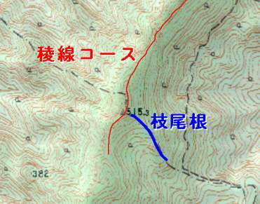 (ルートは明瞭ではありません。稜線コースは,地形図,コンパス必携です。)