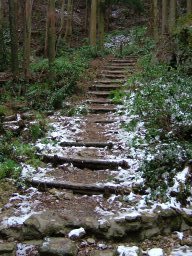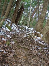 白嶽神社の鳥居を過ぎると,木の根が向きだしの急坂となる。