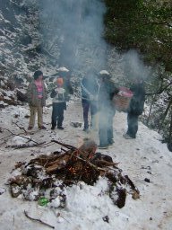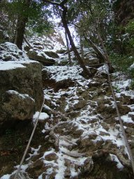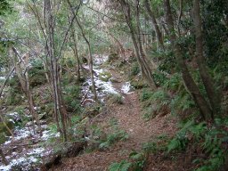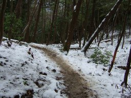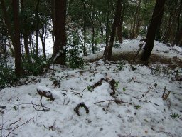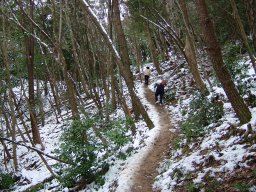 下りは対馬では珍しい雪を眺めながら,ゆっくりと下山した。