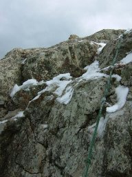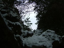 雪で凍った道を登りつめると,西岩峰と東岩峰の間に着く。